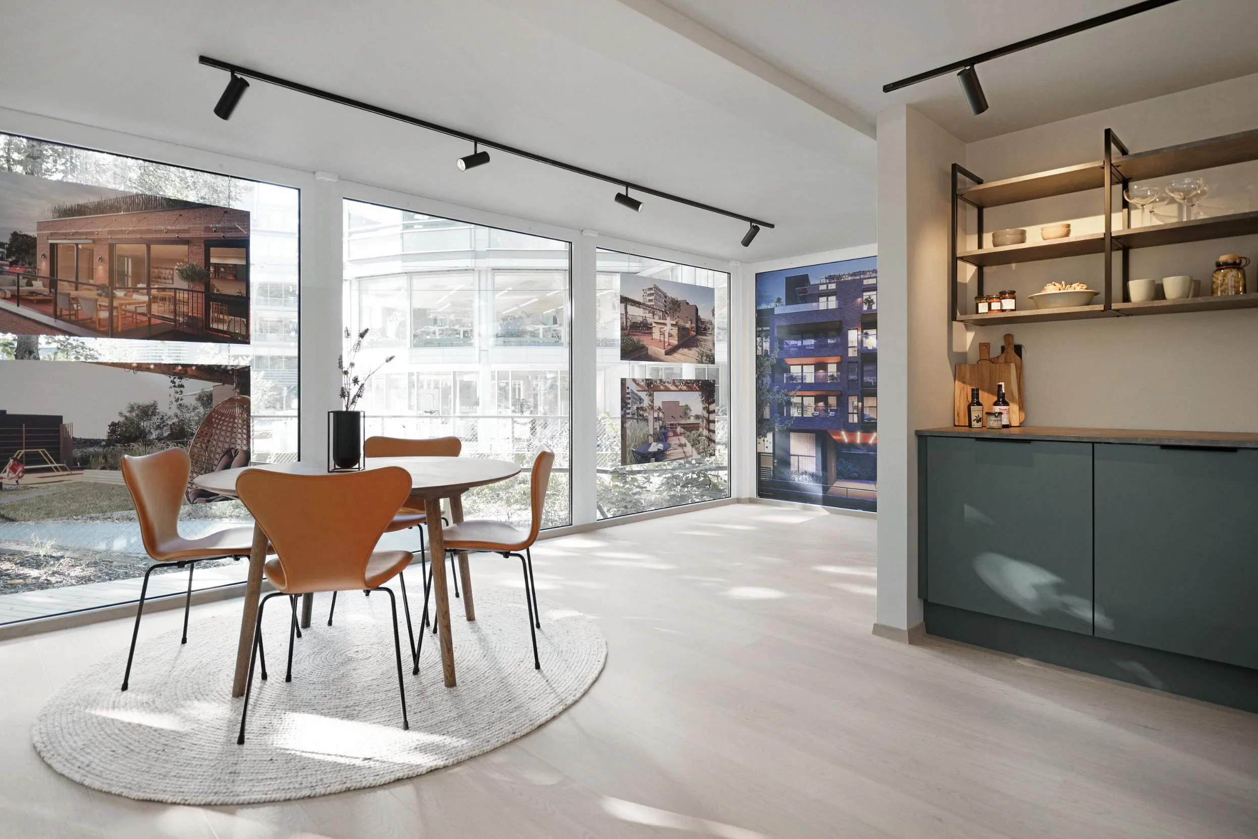 Vi utvikler og innreder salgslokaler som tydelig formidler prosjektets identitet og kvaliteter. Vår leveranse omfatter både møblering og montering av møbler slik at lokalet fremstår helhetlig, profesjonelt og innbydende for potensielle kjøpere.